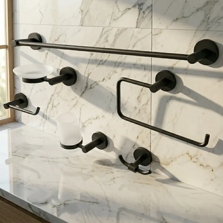 Dacă ești în căutarea echilibrului perfect între estetică modernă și functionalitate, acest set de accesorii din alamă vopsita negru este alegerea potrivită.