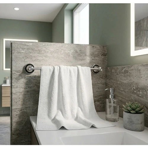 Optimizarea Spațiului: Agățătoarea și suporturile eliberează blatul chiuvetei și podeaua, făcând baia să pară mai spațioasă și mai organizată.