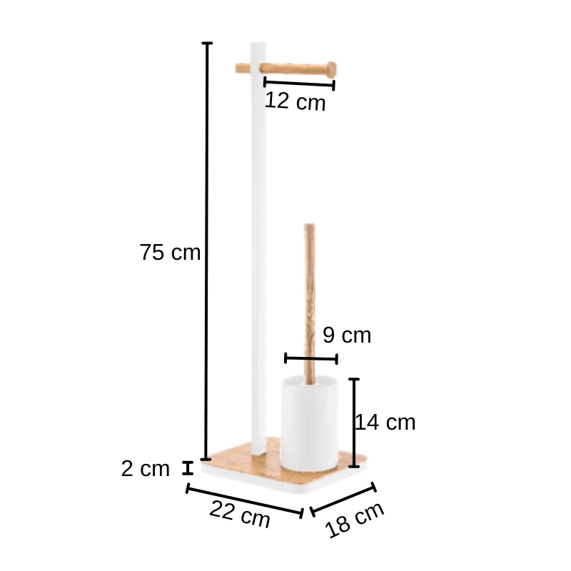 Acces Ergonomic: Înălțimea de 75 cm este calculată pentru a oferi un acces confortabil atât la hârtia igienică, cât și la peria de curățat.