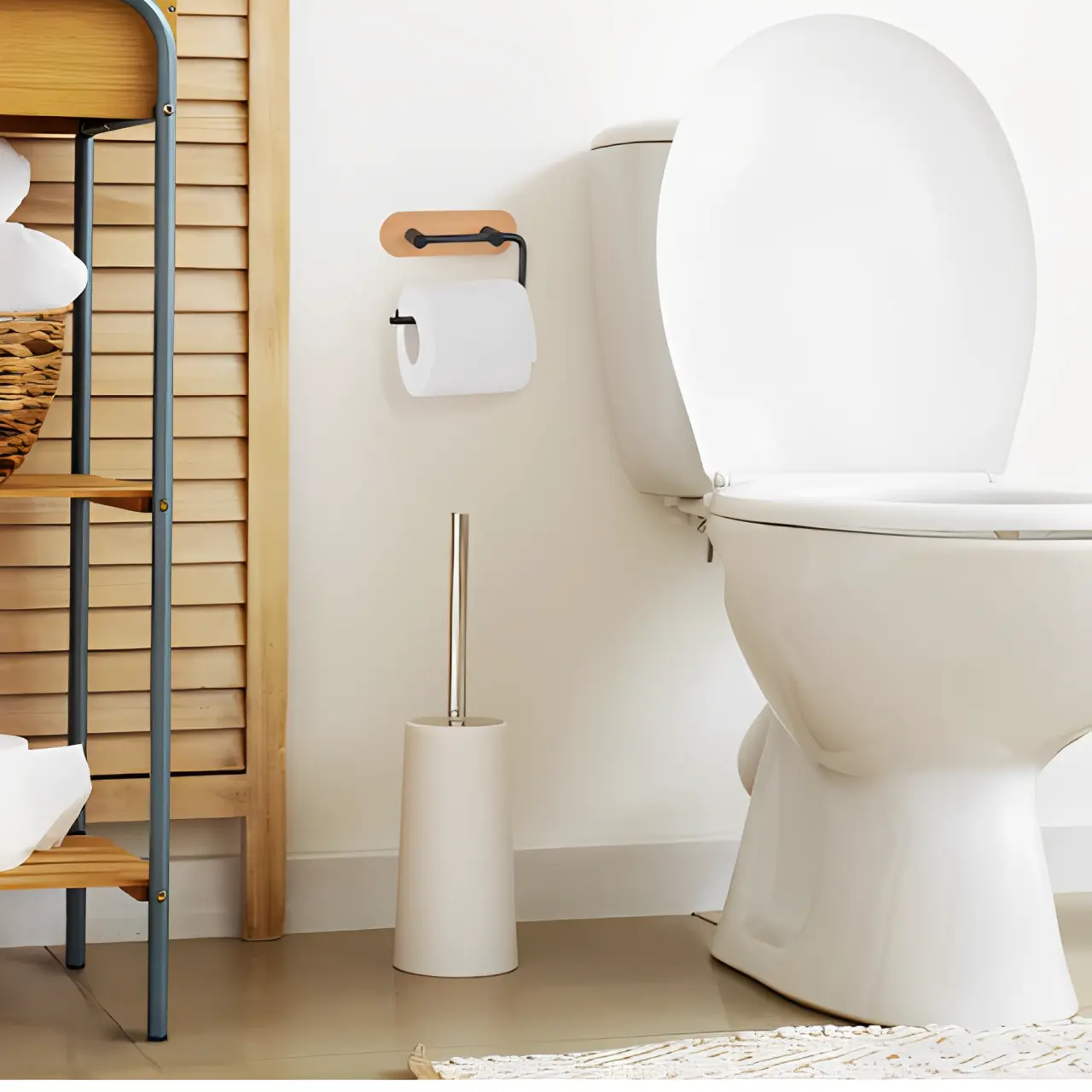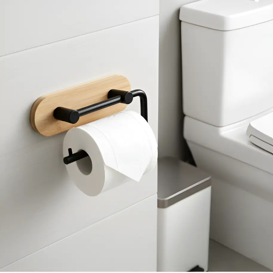 Suportul pentru hârtie igienică din metal și bambus este dovada că și cele mai mici detalii pot face o diferență majoră în designul interior. Stilat și extrem de practic, acest accesoriu aduce un echilibru perfect între funcționalitate și estetică.