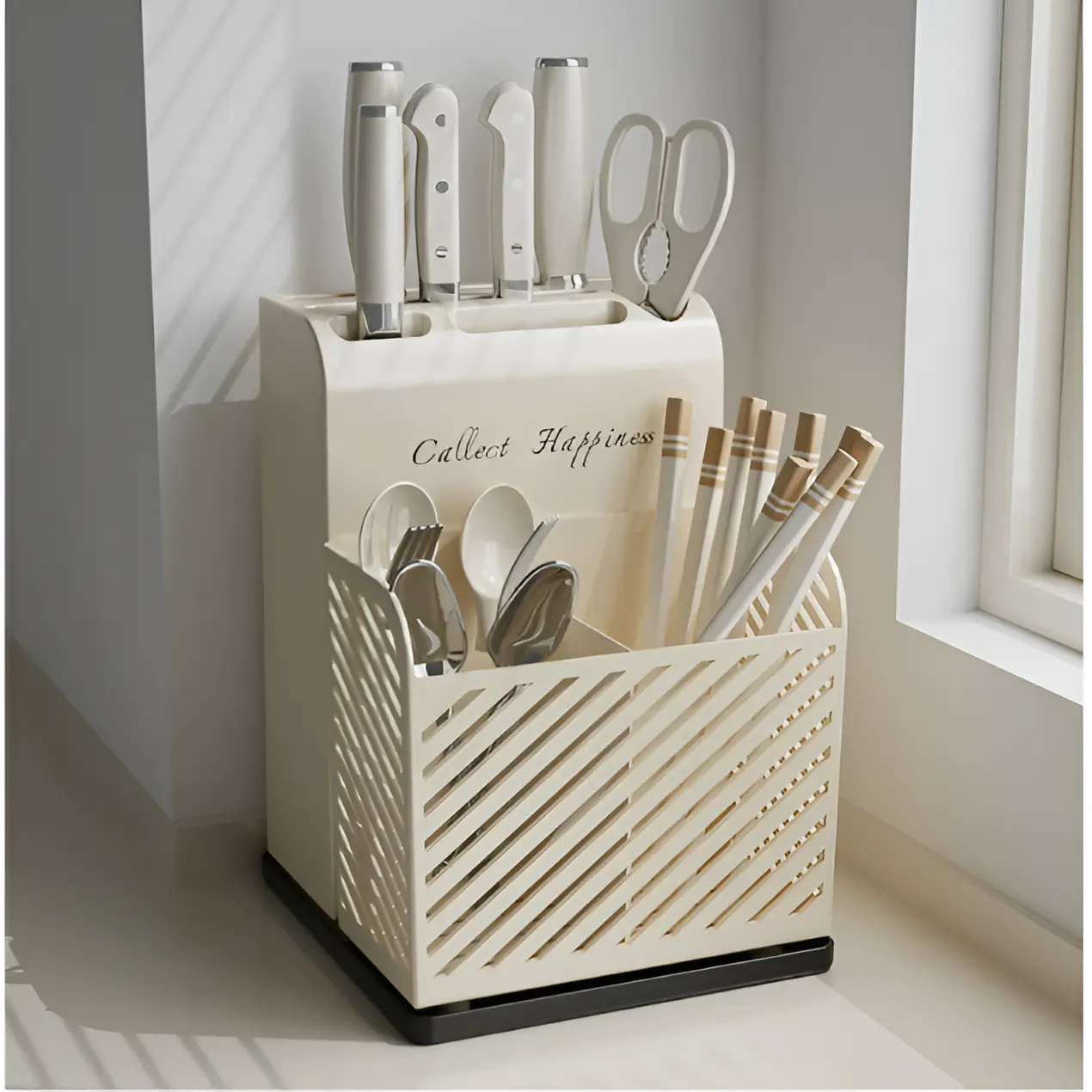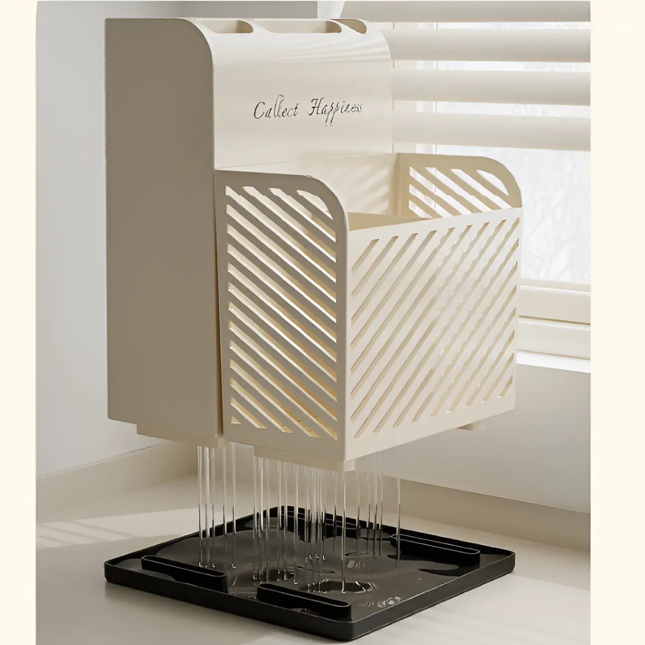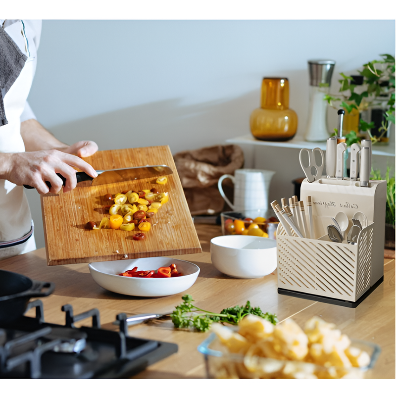 Transformă blatul de bucătărie într-un spațiu ordonat și estetic cu ajutorul acestui suport pentru ustensile. Proiectat pentru a îmbina utilul cu plăcutul, acest accesoriu nu este doar un simplu obiect de depozitare, ci un partener de încredere în menținerea igienei și a organizării zilnice.