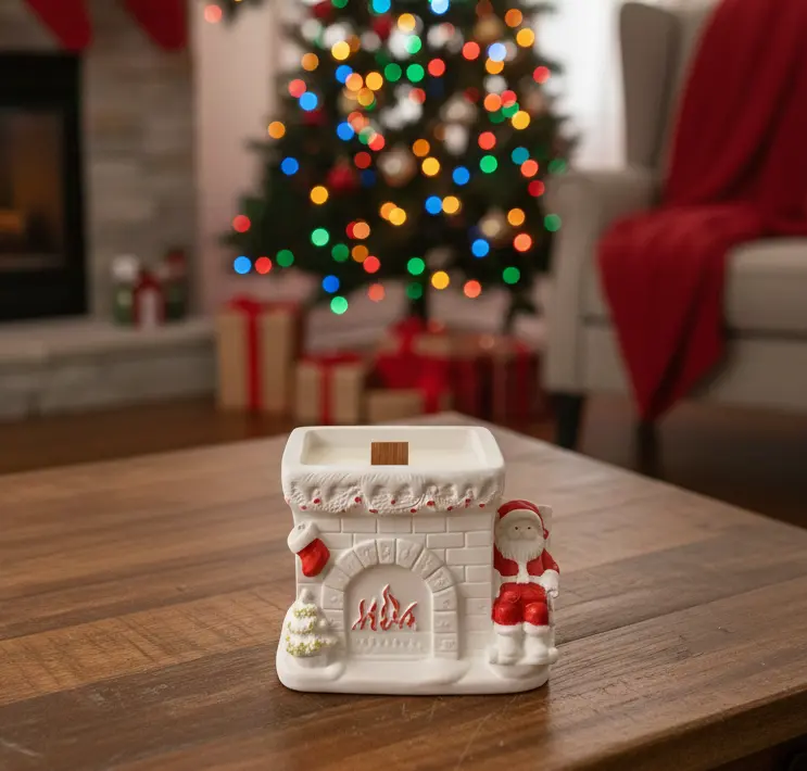 Design: Suportul din ceramică, cu detalii festive (precum Moș Crăciun și șemineul stilizat), devine un obiect decorativ de colecție mult timp după ce lumânarea s-a topit.