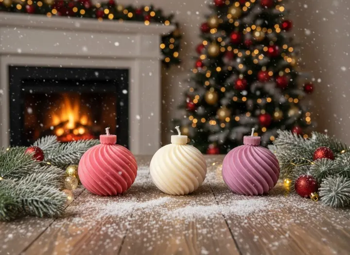 Design: Trei lumânări turnate manual, în forma emblematică de globuri. Ideale pentru a fi așezate pe o tavă, pe masă sau ca decorațiuni.