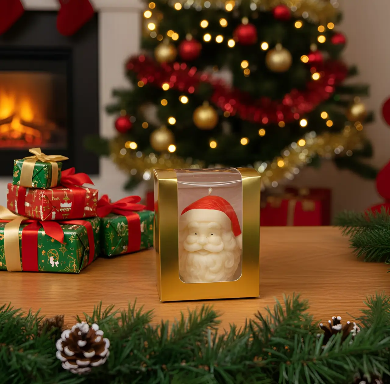 Aduceți acasă spiritul generos și vesel al Crăciunului! Această lumânare facuta manual nu este doar un decor, ci o mică operă de artă care împrăștie un parfum de sărbătoare.