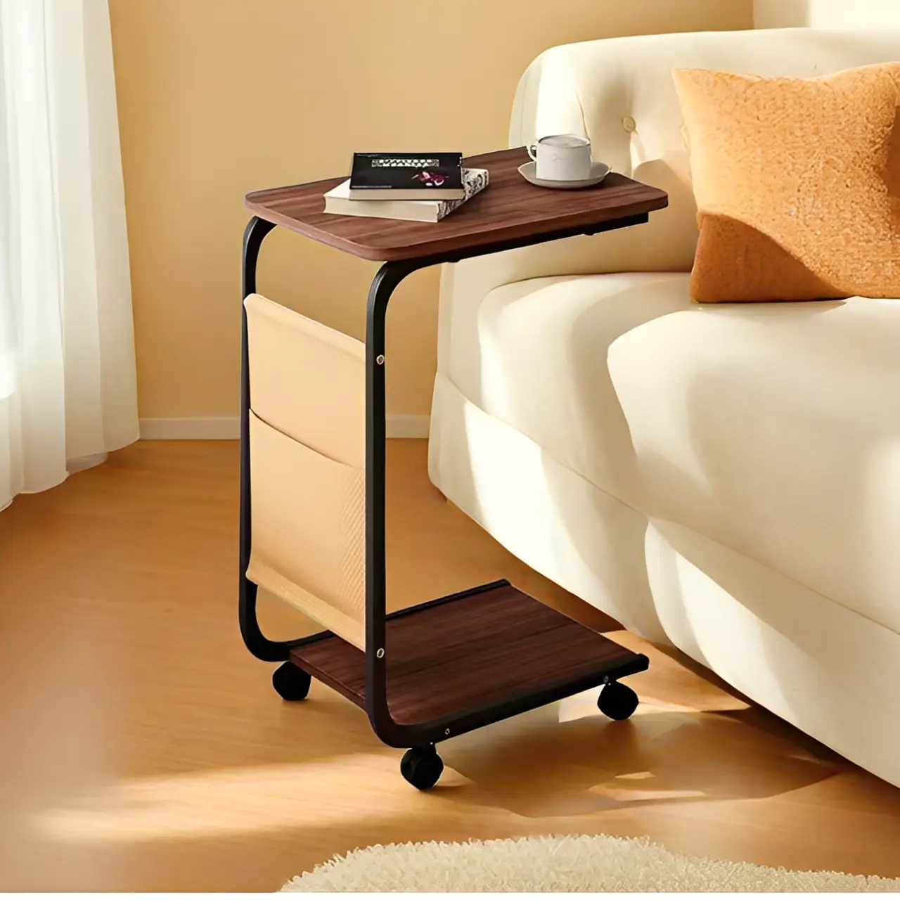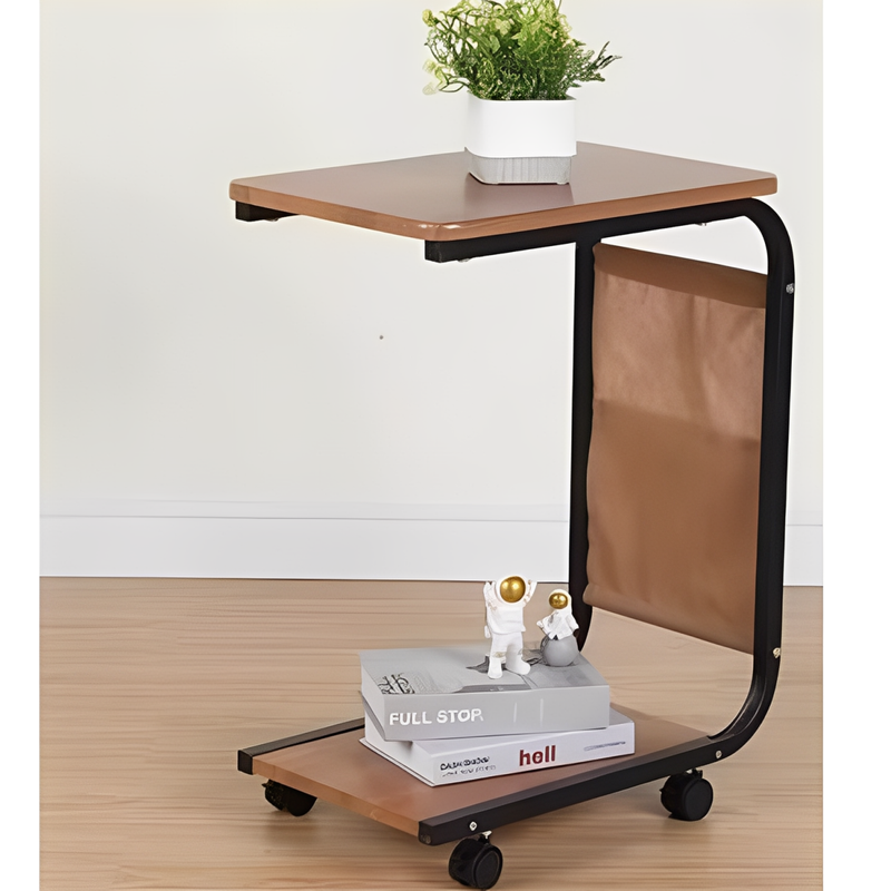 Această măsuță elegantă, cu nuanță de maro, este soluția ideală pentru a-ți optimiza spațiul și a-ți păstra toate obiectele la îndemână. Cu cele două blaturi și buzunarul practic pentru depozitare, vei avea suficient loc pentru cafea, cărți, reviste sau telecomanda. Roțile îi conferă mobilitate, astfel încât o poți muta cu ușurință dintr-o încăpere în alta.