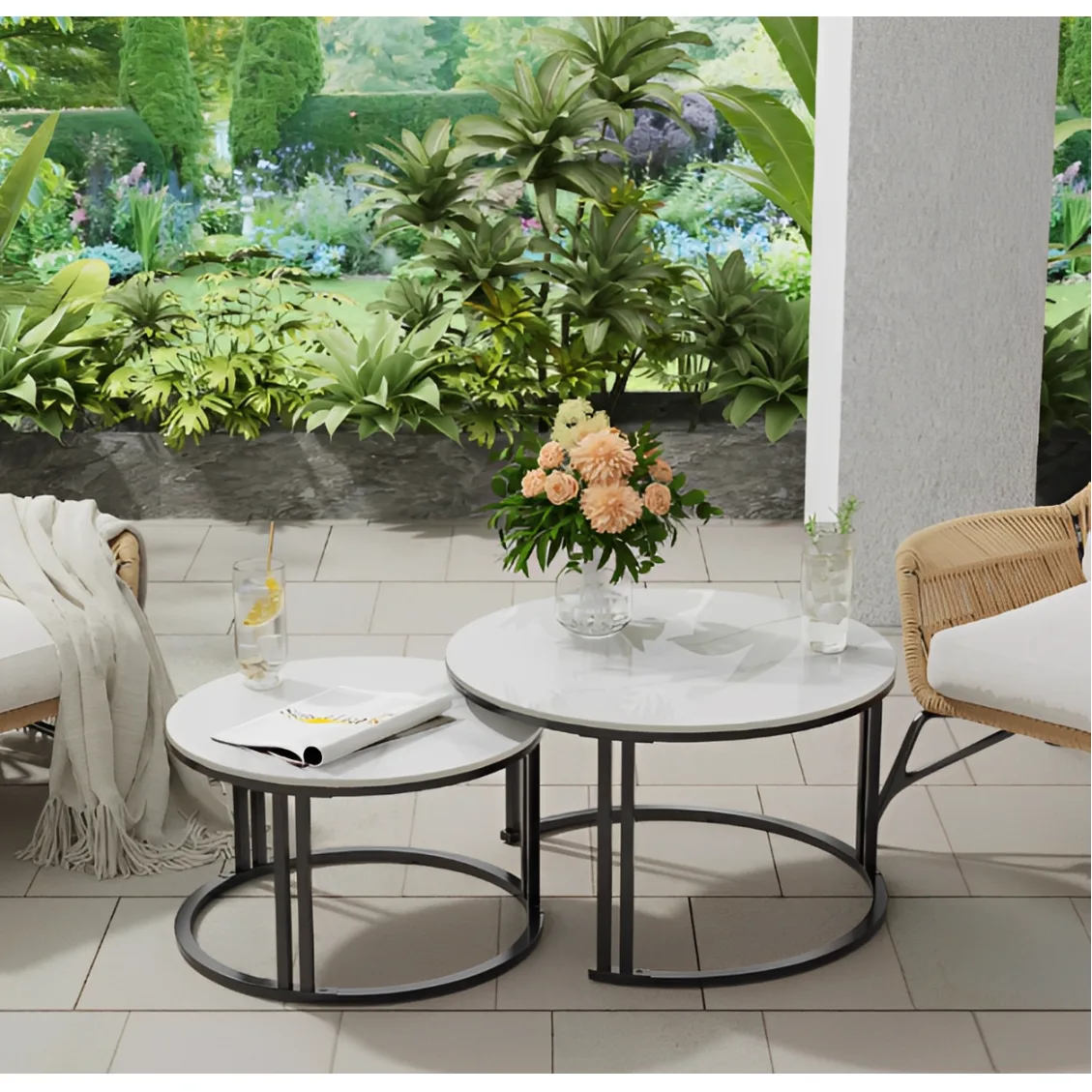 Redefinește estetica livingului tău cu un set de măsuțe de cafea conceput pentru a impresiona. Combinația atemporală de alb și negru transformă orice spațiu obișnuit într-un decor desprins din revistele de design interior. Datorită designului lor circular și siluetei aerisite, aceste măsuțe aduc o notă de luminozitate și rafinament, fiind piesa centrală perfectă pentru momentele de relaxare.