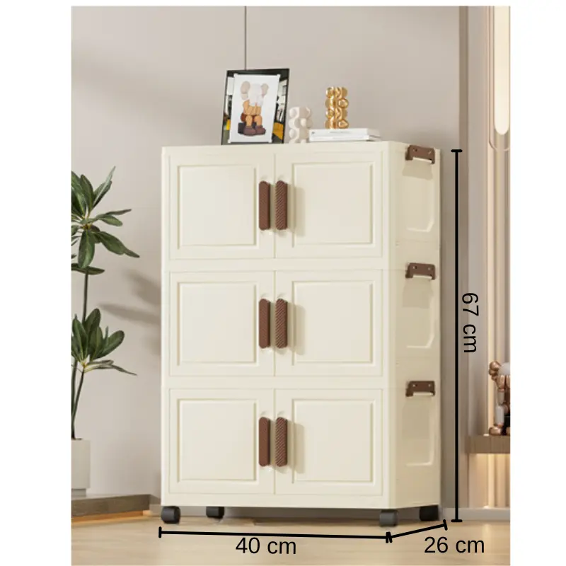 Structură pe 3 niveluri: Trei compartimente, fiecare dotat cu uși frontale pentru protecție împotriva prafului.