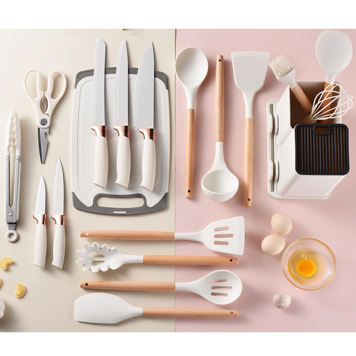 Transforma-ti experienta culinara cu acest set vibrant de 19 piese, fabricat din silicon alimentar si dotat cu o varietate de ustensile esentiale pentru a te ajuta sa prepari orice reteta cu usurinta si stil. Culoarea alb va da contrast spatiul tau de gatit, oferindu-i o nota moderna.